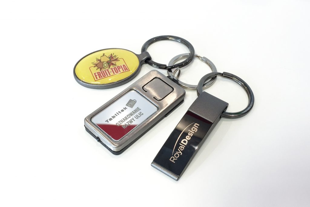 - Breloki z logo i numerami pomieszczeń